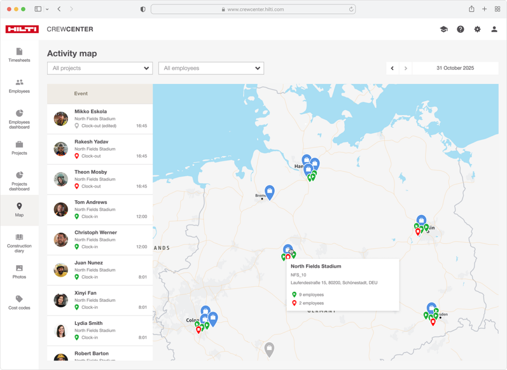 CrewCenter is a digital time-tracking solution for construction sites. It helps simplify recording working hours and reduce paperwork, providing accurate data for payroll and job costing. With CrewCenter, you gain transparency and efficiency in workforce management – all in one platform